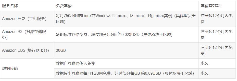 由于亞馬遜云科技服務(wù)種類(lèi)較多,且計(jì)費(fèi)詳細(xì),很多用戶(hù)有些看不懂,所以對(duì)使用亞馬遜云望而卻步。其實(shí)亞馬遜云科技很多服務(wù)都有免費(fèi)套餐,以讓用戶(hù)體驗(yàn),這些服務(wù)的免費(fèi)套餐,搭建一個(gè)私人網(wǎng)盤(pán)綽綽有余。由于亞馬遜云海外區(qū)僅需個(gè)人信用卡就可以注冊(cè),所以我們以海外區(qū)為例。我們可以從以下鏈接亞馬遜AWS海外區(qū)域賬戶(hù)免費(fèi)套餐_免費(fèi)云服務(wù)-AWS云服務(wù) 看到亞馬遜云哪些服務(wù)具備免費(fèi)套餐: